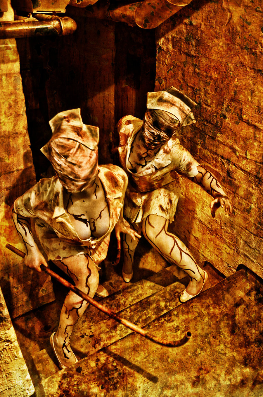 Who is the mascot for the games franchise. You think that's pretty clever and also a good touch but you end up seeing it EVERYWHERE in the movie so it loses its 'ooh!' factor but still neat. She is spotted and makes a dash for it to a carousal that is powered by a more hefty Pyramid head then I remember, she's on it with him and the horses turn into bondage clad naked ladies who if I remember are gagged.. more fetish then SH style.